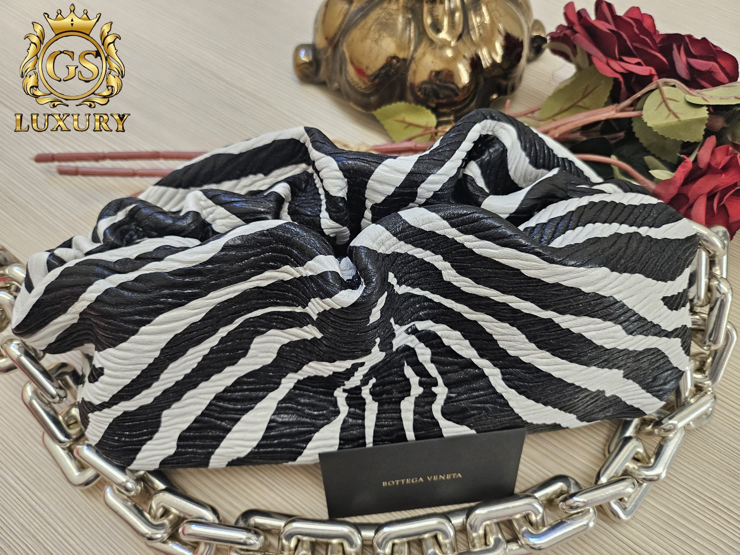BOTTEGA VENETA Chain Pouch, in vitello a lische zebrato, condizioni pari al nuovo 2025, versione da 30 cm, hw Silver. Completa di Dust Bag.